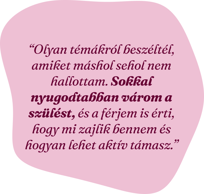 A program végére megnyugszol, csökkennek a félelmeid, és magabiztosan várod a szülést. Tisztábban látod majd, mi történik veled a folyamat során, és nő a pozitív szülésélmény esélye.